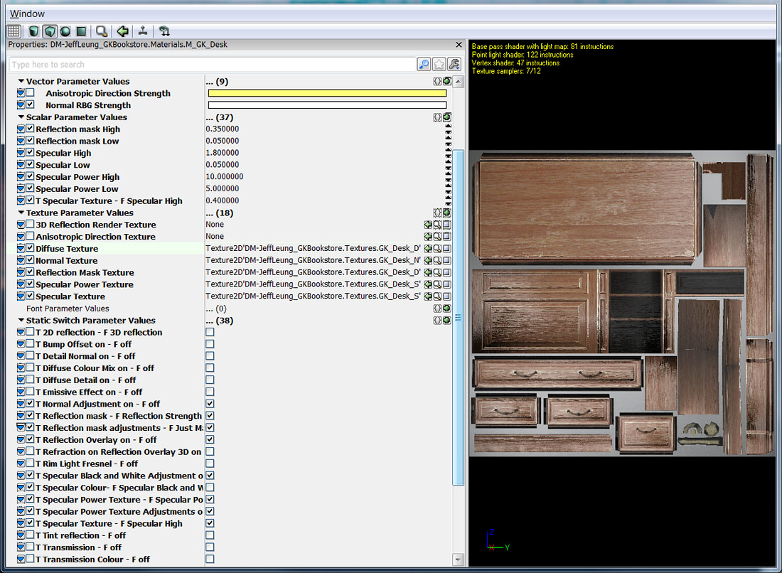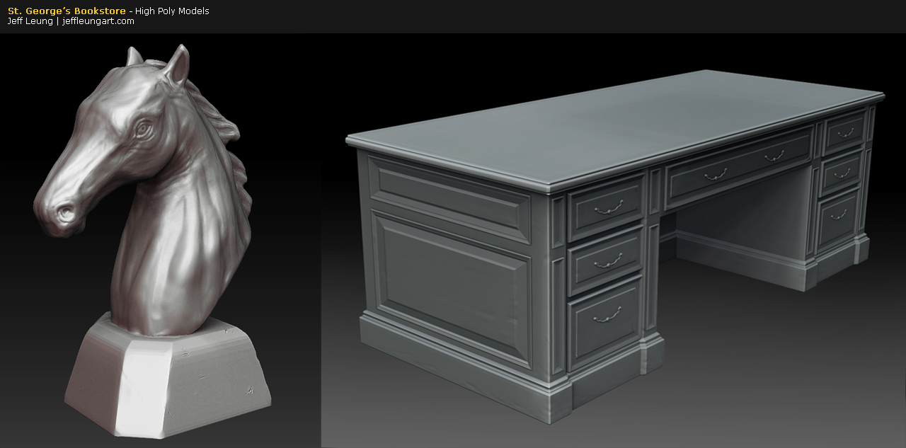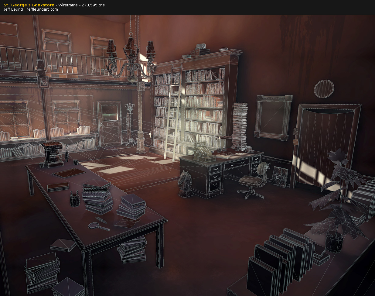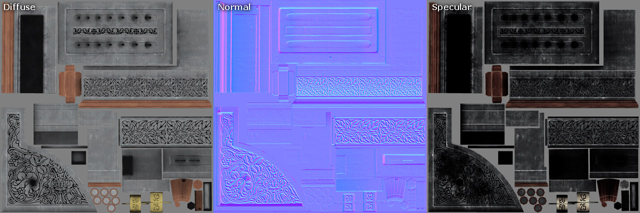 Textures The following are some of the textures used to make this environment. Leather Art Bag ![]() Cash Register ![]() Horse Statue ![]() Tileable Textures ![]() Shaders A lot of material variation was achieved at the shader level. A custom shader was used to tweak diffuse/normal/specular values and to add things like reflection and transmission. ![]() Reference Image ![]() < Back to 3D Art |
