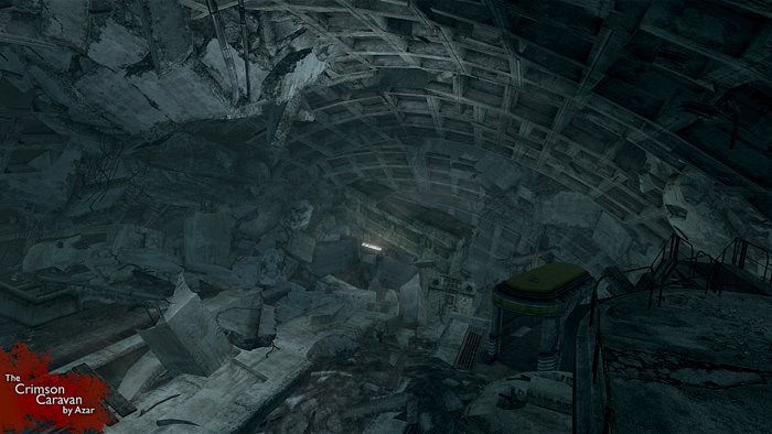 The Crimson Caravan is a quest mod for the game Fallout 3, and is a continuation of Arefu Expanded. It was created with the GECK editor and uses Fallout 3's existing graphical assets as well as some custom assets, and took three months to make. I was responsible for level design, level layout, level scripting (AI, puzzles, etc.), game flow, story writing, play testing, and user support.