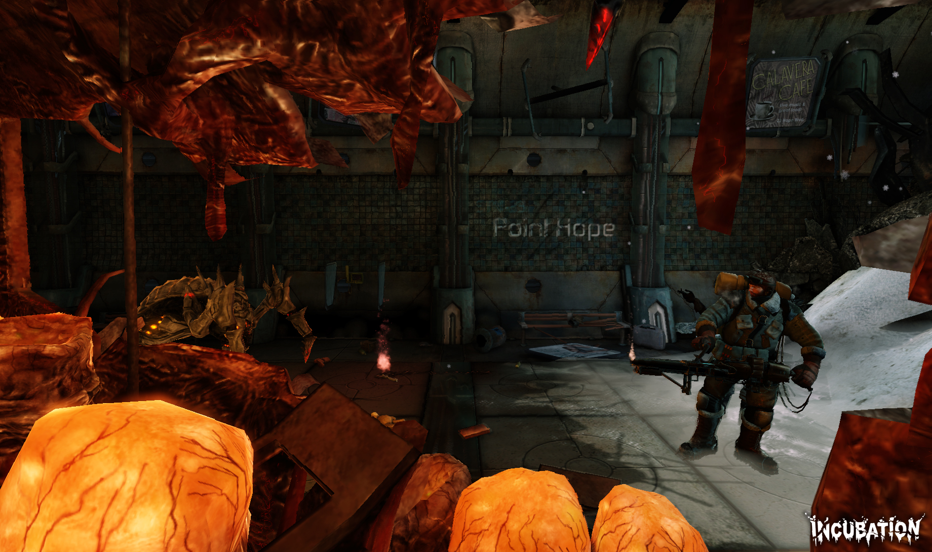Incubation is an Unreal mod that I created with five other artists. The mod is a standoff between soldiers and alien creatures in an abandoned near-future subway station. As the level designer, I was responsible for level layout, visual effects, shaders, lighting, camera work, and asset implemetation. I also created the subway platform environment. The mod took four weeks to make, and was built using the UDK. Overall, it was an awesome experience, and I got to work with a great team.